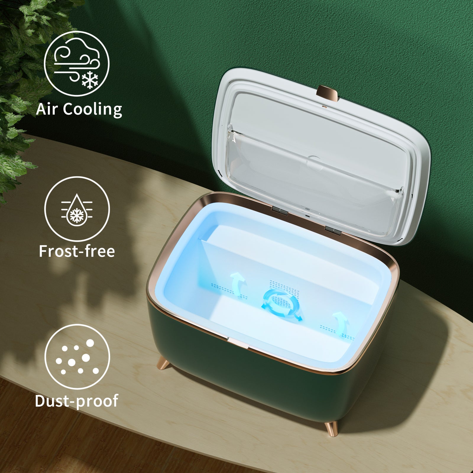 - AIR-COOLING TECH: Different from other semiconductor design, LVARA makeup storage fridge is Air-cooling technology that protects from freezing and frost. You can customize the temperature range from 42 to 82°F. You can also use the "smart mode" to choose the temperature at specific time period.